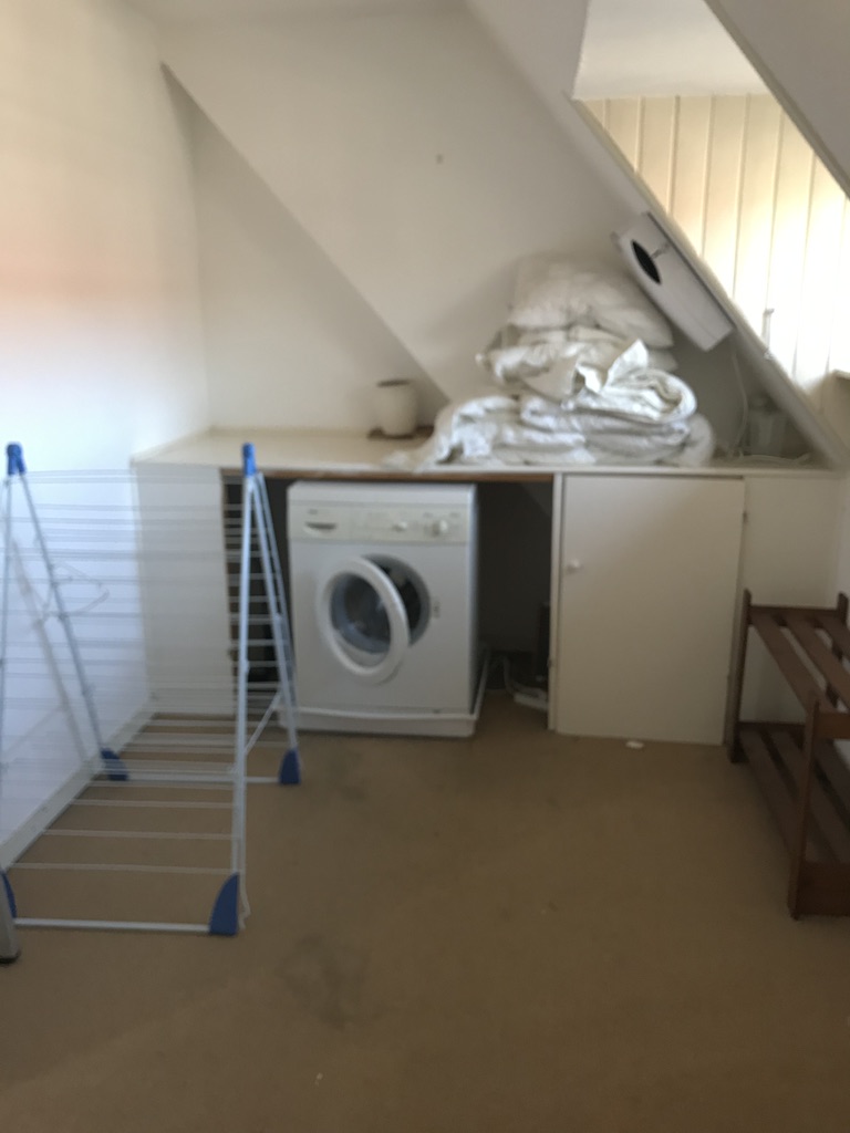 Op de vierde verdieping bevindt zich nog een ruime zolderkamer met wasmachine.