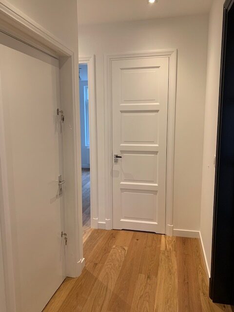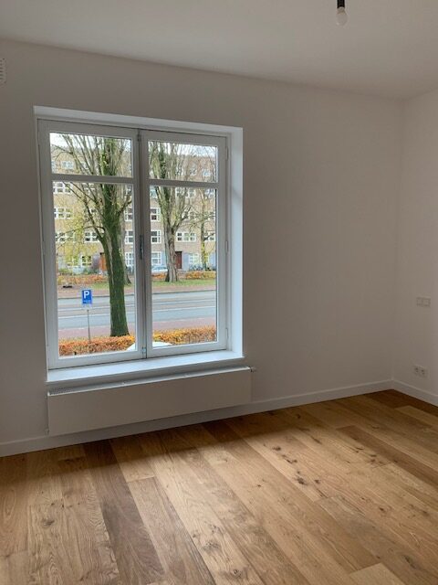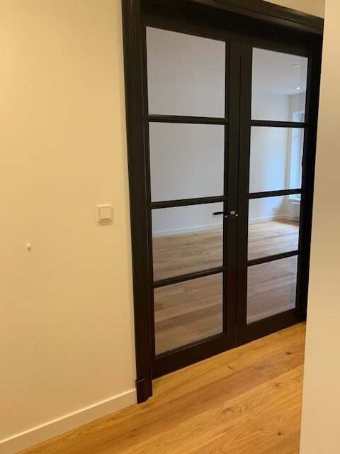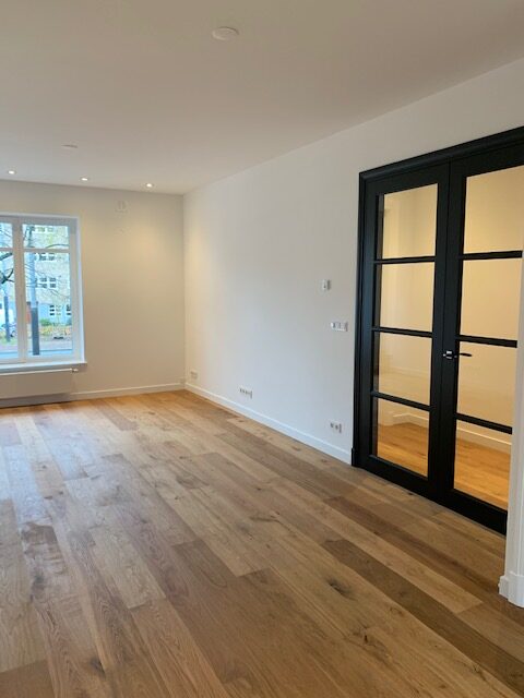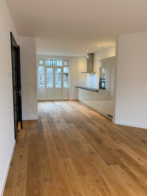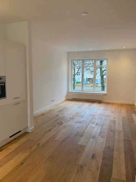 Via het gemeenschappelijke trappenhuis bereikt u de entree op de 1e verdieping. Hier vindt u een hal met toegang via dubbele deuren naar de zonnige woonkamer. De ruime nieuwe keuken is voorzien van een moderne koelkast/vriezer, inbouw vaatwasser, combi oven, inductiekookplaat. De openslaande deuren geven toegang geven tot het heerlijke balkon. Een ruime slaapkamer aan de voorzijde en een tweede ruime slaapkamer aan de achterzijde met tevens toegang tot het balkan. De luxe badkamer is voorzien een inloopdouche met regendouche, een wastafelmeubel en de aansluiting voor wasmachine & wasdroger. In de hal is een separaat toilet. Alle ruimtes in het appartement hebben glad gestucte muren en een houten vloer.